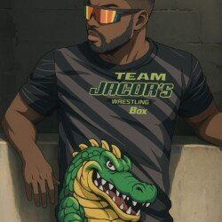 Kit de lembrança do Team Jacaré (camiseta, boné e adesivos)